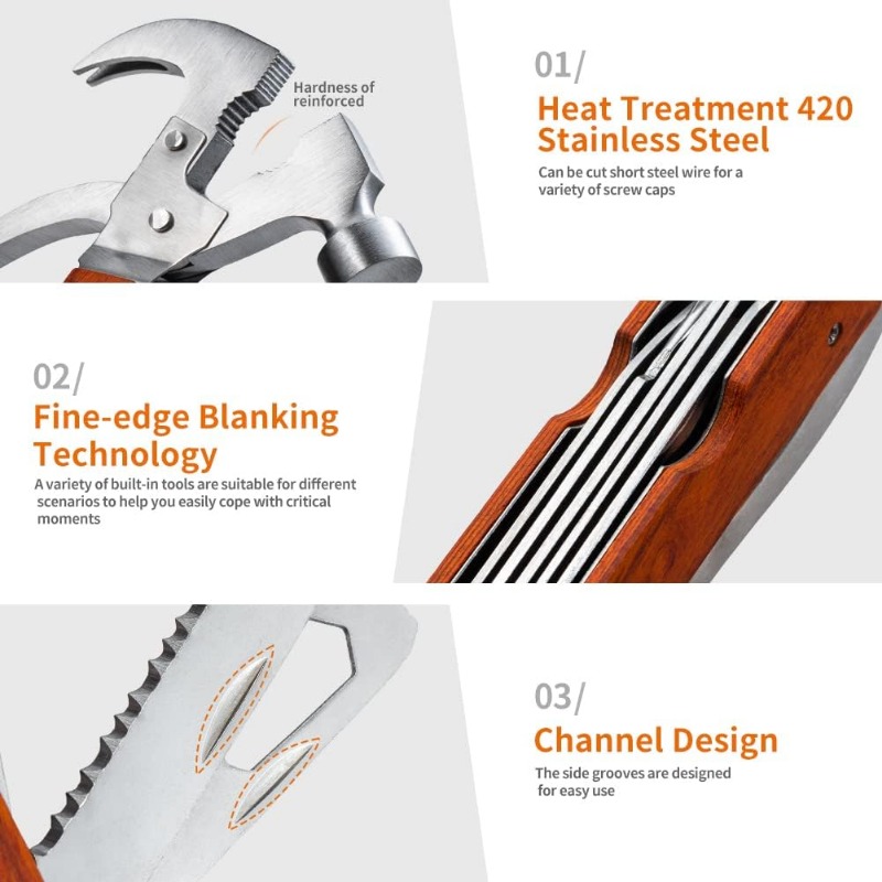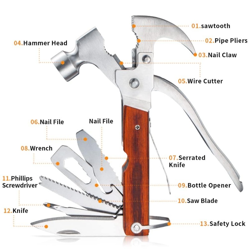 This versatile tool combines 13 essential functions, including a hammer, pliers, wire cutters, screwdriver, knife, saw, wrench, and more, making it the perfect solution for home repairs, outdoor activities, and emergency survival situations.